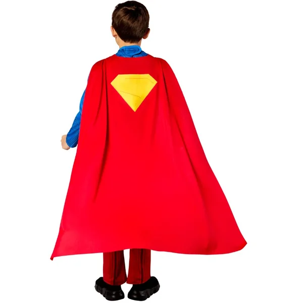 Une cape en jersey rouge détachable avec attaches velcro sur les épaules.