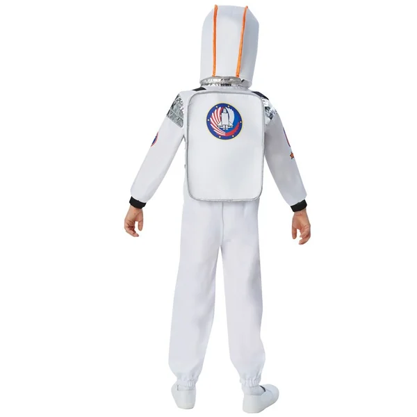 Une combinaison d’astronaute blanches avec motifs imprimés sur le devant, avec fermeture éclair