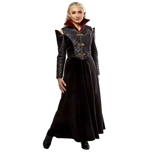 - Top en taffetas avec col en velours bordeaux, épaulettes, fermoirs dragon en métal, chaîne et clous sur la manche, taille S