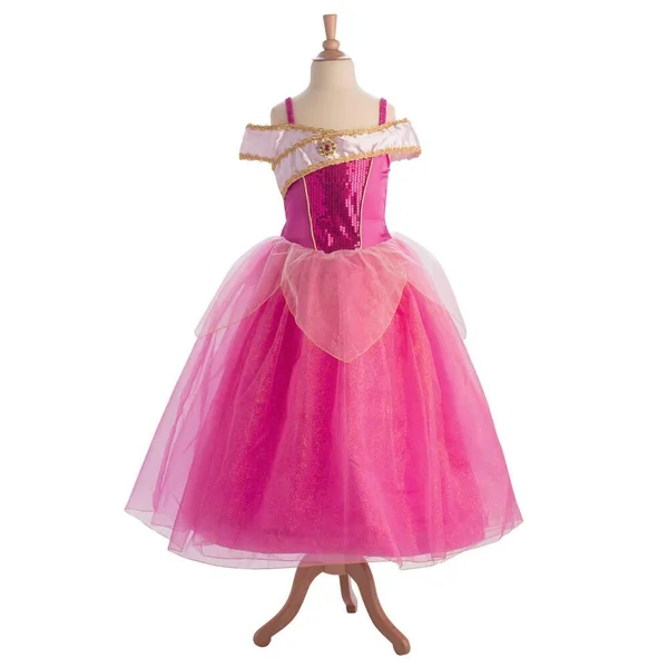 Déguisement de princesse robe rose fuchsia. Contient : 1 robe et 1 diadème en plastique. Le modèle est destiné aux enfants de 5-7 ans. Stature : 120 cm. Tour de poitrine : 62 cm. Tour de taille : 55 cm. Le costume est livré sur cintre dans une housse en organza assortie à la couleur de la robe, dimensions 42 x 5 x 110 cm. Robe : 100 % polyester, lavable en machine à 30° en cycle délicat. Chaussures non fournies.