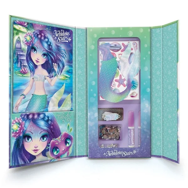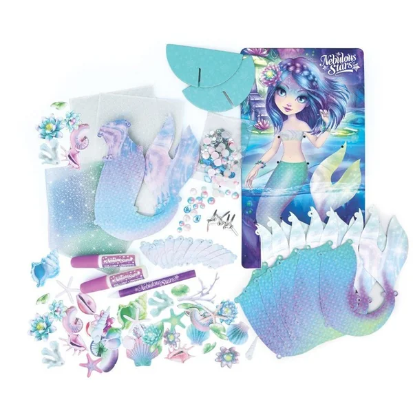 Nenuphia adore nager comme une sirène ! Fabrique-lui 15 queues de sirène à partir de coquillages de papier scintillant. Habille-la en suspendant tes créations sur le carton rigide.