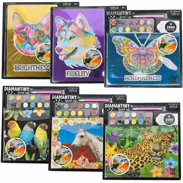 Découvrez Diamantiny Level Up, l’activité créative tendance qui permet de réaliser de magnifiques mosaïques scintillantes en relief grâce à de petites gemmes colorées à appliquer par numéros. Une activité artistique relaxante et ludique qui transforme chaque création en véritable œuvre brillante.