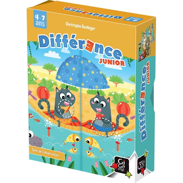 Les petits aussi ont le droit à leur Difference ! Le fameux Difference revient dans une version spéciale pour les plus jeunes. 4 illustrateurs de talents vous emmènent dans un univers amusant et coloré ! Qui trouvera le premier les 2 différences entre sa carte et la carte du centre de la table ? Contenu : 50 cartes (90 x 130 mm), règle du jeu, boîte métal. 15 à 30 min.