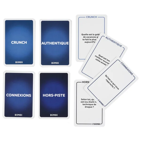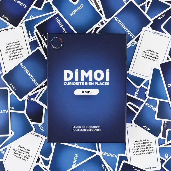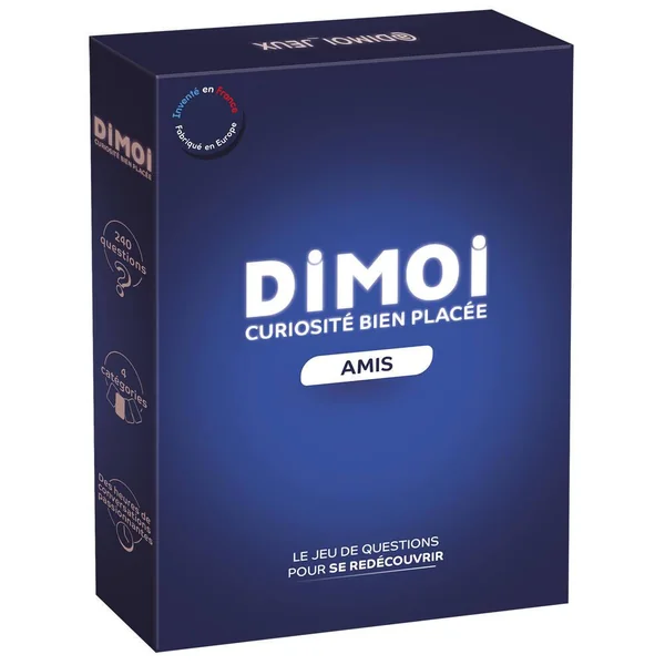 Dimoi Édition Amis est un jeu de cartes avec 144 questions pour échanger, connaître et se redécouvrir entre amis. Faites grandir vos amitiés grâce à ces questions soigneusement sélectionnées. Durée de la partie 30 minutes. Nombre de joueurs 2.