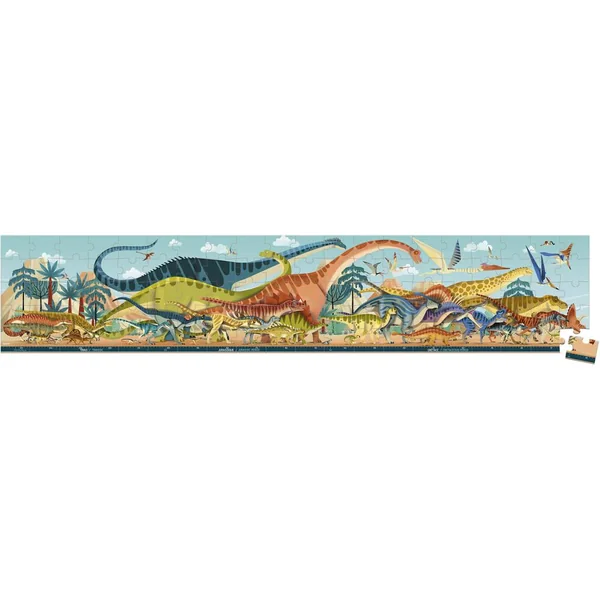Durant quelle période a vécu le Tricératops ? Trias, Jurassique ou Crétacé ? Trouvez la réponse grâce à ce superbe puzzle panoramique représentant un grand nombre de dinosaures, classés en fonction de la période durant laquelle ils ont vécu. Le puzzle compte plus de 40 créatures et permet de susciter la curiosité autour de l’époque des dinosaures. Ce puzzle carton est composé de 100 pièces et mesure 1 mètre de long une fois terminé ! De quoi impressionner les petits et les grands ! La jolie valisette permet de ranger et transporter son puzzle partout. Un poster se trouve également à l’intérieur afin de servir de modèle durant la réalisation. L’impression est à base d’encres végétales, le carton issu de forêts gérées durablement (certifiées FSCTM) et fabriqué en France.
