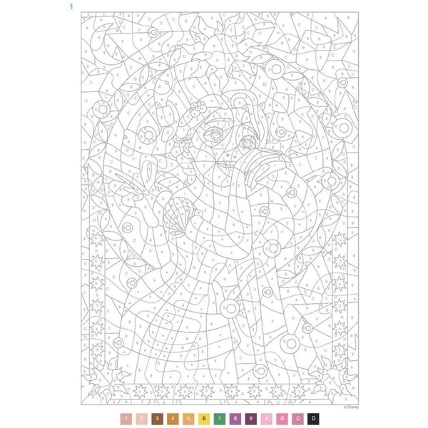 100 scènes à colorierSuivez le code couleur pour révéler de véritables tableaux aux allures de vitraux : découvrez les personnages Disney et Pixar qui se cachent derrière chacune de ces illustrations mystères, et retrouvez grâce à eux votre âme d’enfant. 100 illustrations mystères à découvrir au gré de vos crayons ! Coloriez les chiffres et découvrez l’image !