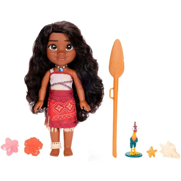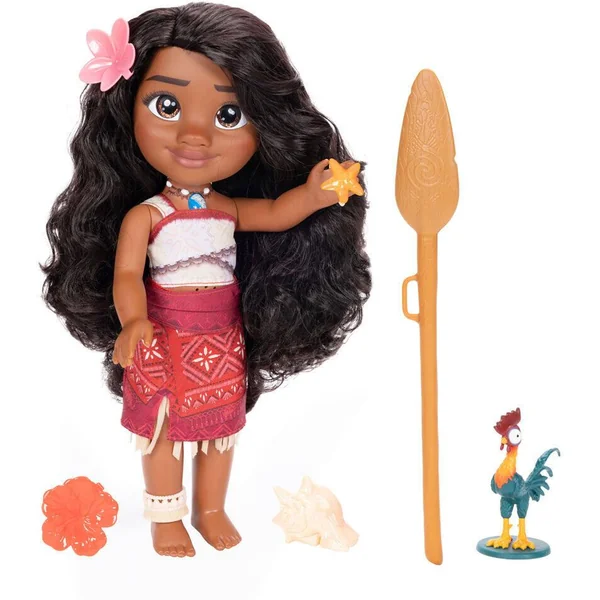 Disney Vaiana 2. Revis les meilleures scènes du film avec cette poupée chantante. La poupée chante la chanson du film. Elle mesure 38 cm et porte sa tenue emblématique dans le film. Livré avec la figurine de HeiHei et des accessoires. 3 piles LR03 fournies. Fonction Try Me. La poupée a un bouton qui permet de choisir la langue : anglais, français, espagnol, italien ou allemand.