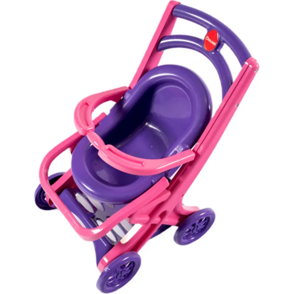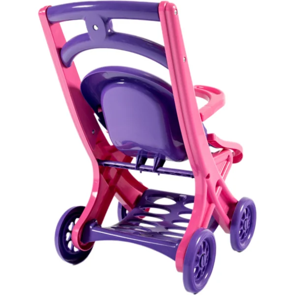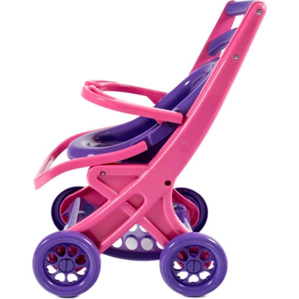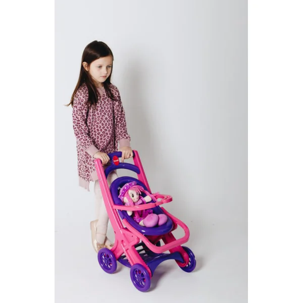 Une jolie poussette colorée et sécurisée pour poupées, idéale pour jouer à la maison, mais aussi dans le jardin ou au parc, peu importe la saison et les conditions météorologiques.