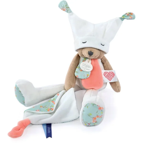 Pour appréhender sereinement le dodo, rien de tel qu’un rituel avec Doudou avant de se coucher. Ce Doudou Ours blanc a la particularité d’avoir un grand bonnet de nuit qui se replie sur ses yeux quand vient l’heure de se dire « Bonne nuit »! Aussi, il est composé d’une étiquette avec un QR code coeur qui permet de flasher une histoire à comter. Grand nombre de détails, étiquettes, nouettes et mouchoir sont à manipuler. Ainsi, il présente les fonctions idéales pour favoriser son endormissement. Grâce à son numéro unique, Doudou perdu est vite retrouvé ! Enregistrez votre Doudou et découvrez toutes les garanties sur le site doudouetcompagnie.com.Ce produit bénéficie de LA GARANTIE DOUDOU. Grâce à son numéro unique, Doudou perdu est vite retrouvé! Enregistrez votre Doudou et découvrez toutes les garanties sur le site doudouetcompagnie.com.