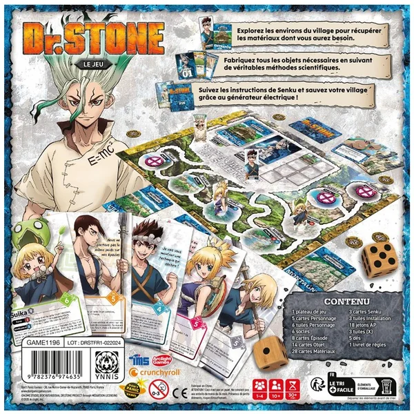 Explorez les environs du village pour récupérer les matériaux dont vous aurez besoin. Fabriquez tous les objets nécessaires en suivant de véritables méthodes scientifiques. Suivez les instructions de Senku et sauvez votre village grâce au générateur électrique !