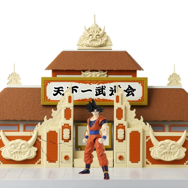 Reproduction plus vraie que nature de l’emblématique Arène Tenkaichi Budokai, qui a accueilli de célèbres combats de la saga Dragon Ball. Elle permet d’exposer la ou les figurines de votre choix parmi votre collection de Héros Dragon Ball. Recréez les combats les plus mythiques du championnat du monde d’arts martiaux. L’arène est personnalisable, vous pouvez incliner l’enseigne, détruire un mur ou créer un trou dans le sol comme si un combat avait eu lieu. Dimensions : 41 cm x 20,5 cm x 31 cm.L’arène Tenkaichi Budokai, lieu emblématique des championnats d’arts martiaux de la saga Dragon Ball.Exposez toute votre collection de figurines Dragon Ball pour recréer les combats légendaires des tournois Tenkaichi Budokai.L’arène est personnalisable : inclinez l’enseigne, détruisez un mur, créez un trou dans le sol pour rendre les combats plus réalistes et fidèles au manga et à l’animé !.Compatible avec toutes les figurines Dragon Stars 17cm, un large choix de personnages pour jouer dans ce décor mythique de Dragon Ball..Collectionnez tous les jouets Dragon Stars et Dragon Ball Super de Bandai.