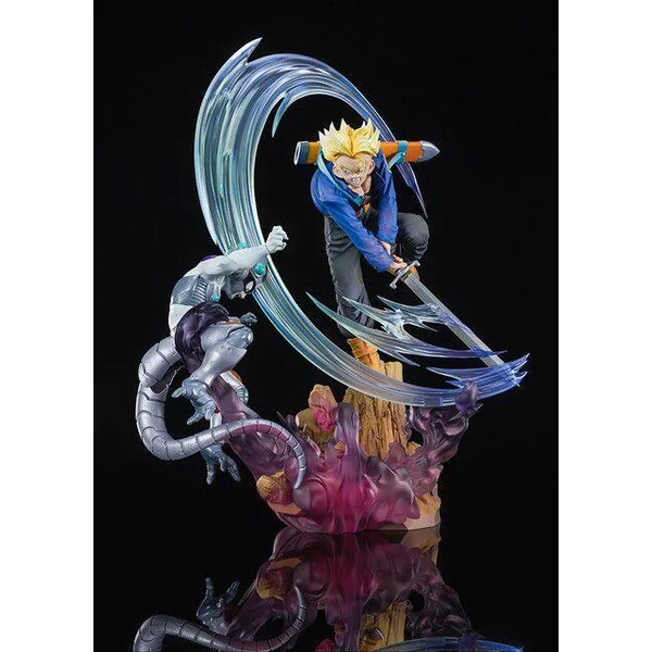 Nous attendions depuis longtemps un diorama dans la gamme Figuarts Zero Dragon Ball. C’est donc la scène mythique de Future Trunks tranchant en 2 Mecha Frieza qui arrive dans la gamme Extra Batlle, de quoi satisfaire tous les dans de DBZ. Hauteur : 28 cm. Matière : PVC / ABS.