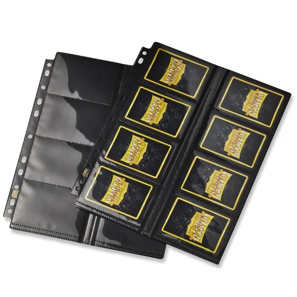 Les pages sont dotées de pochettes ultra-transparentes reposant sur un fond noir texturé, rehaussant l’élégance de vos classeurs. Chaque page est dotée de 16 pochettes latérales pour cartes, idéales pour ranger toutes sortes de sorts magiques.