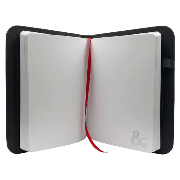Préparez-vous pour l’aventure avec le journal de campagne premium officiel pour Donjons & Dragons ! Comme notre Premium Zippered Character & Book Folio, ce journal présente le logo esperluette rouge classique de D&D complété par des coutures rouges. À l’intérieur de la couverture en toile de qualité supérieure, vous trouverez une boucle élastique pour ranger un crayon ou un stylo, et 250 pages de grille de points marquées d’un filigrane D&D esperluette. Il s’agit de la mise à niveau parfaite pour tout membre du groupe, DM ou passionné de D&D.