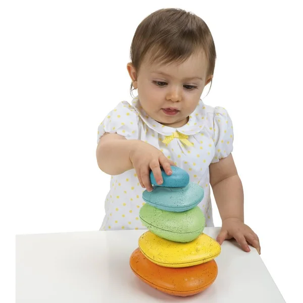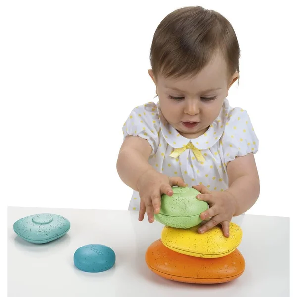 Jeu d’empilage coloré, qui met les endant au défi de trouver l’équilibre en construisant leur première tour en galet ! 5 galets, plusieurs combinaisons possibles, Plastique recyclé Visuels non contractuels, la couleur du produit peut varier.