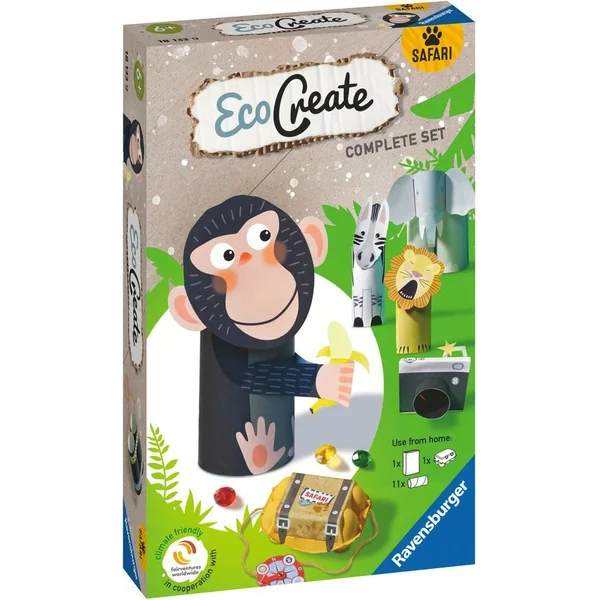 Créative et éducative, la gamme EcoCreate permet aux enfants de fabriquer des objets pour jouer, décorer ou stocker, en réutilisant des emballages tout en apprenant les enjeux du recyclage et de la préservation de l’environnement. Clé en main, les coffrets EcoCreate contiennent tout le nécessaire pour réaliser les projets : des plans de montage, de la peinture et un pinceau, des pièces en bois et en plastique, de la laine, un tube de colle, … Un vrai gain de temps et d’énergie pour les parents ! Parmi 4 thèmes de la collection Mini, l’univers Safari saura ravir les enfants. A partir d’une boite à œuf ou de rouleaux de papier, les enfants créent écologiquement : 5 animaux sauvages, 1 paire de jumelles, 1 sac, 1 appareil photo et 1 boussole. Dès 5 ans. Ce produit est composé de matériaux issus de forêts bien gérées certifiées FSC®, de matériaux recyclés et de matériaux issus d’autres sources contrôlées (FSC-C111262).
