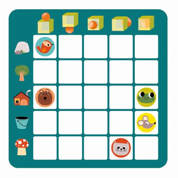- Le jeu se base sur un tableau à double-entrée, comme utilisé en école maternelle.