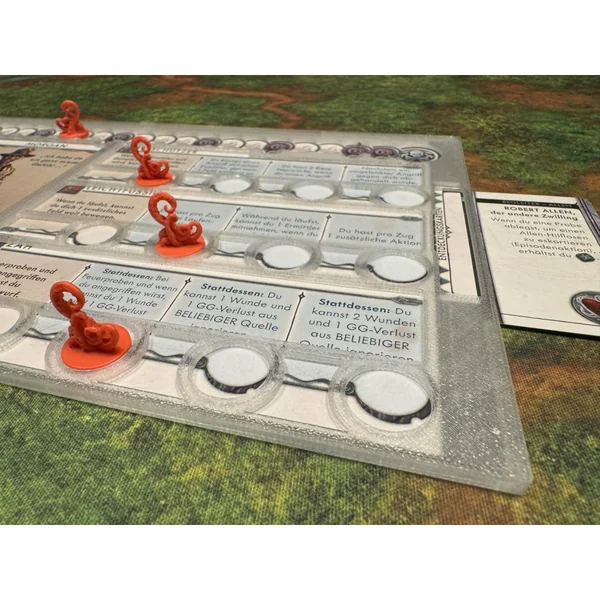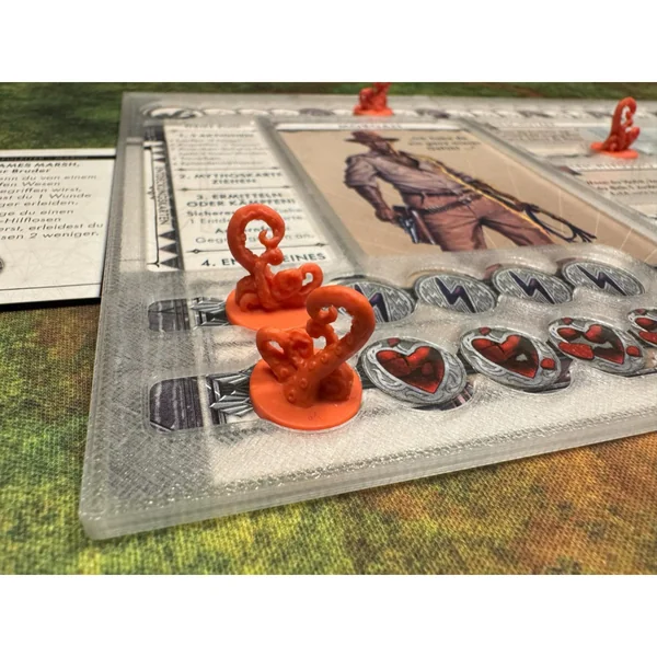 Où était mon marqueur de vie ? À quel niveau était mon stress ? À quel niveau avais-je progressé ? Mettez fin à tout cela et procurez-vous ces superbes superpositions semi-transparentes pour toutes les cartes de personnage de Cthulhu : Death May Die. Désormais, tout est parfaitement sous contrôle.