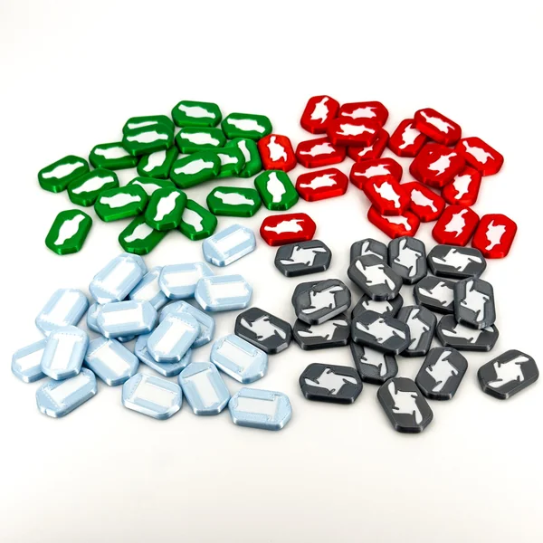 Plateau de jeu, marqueurs en carton et cartes non inclus.