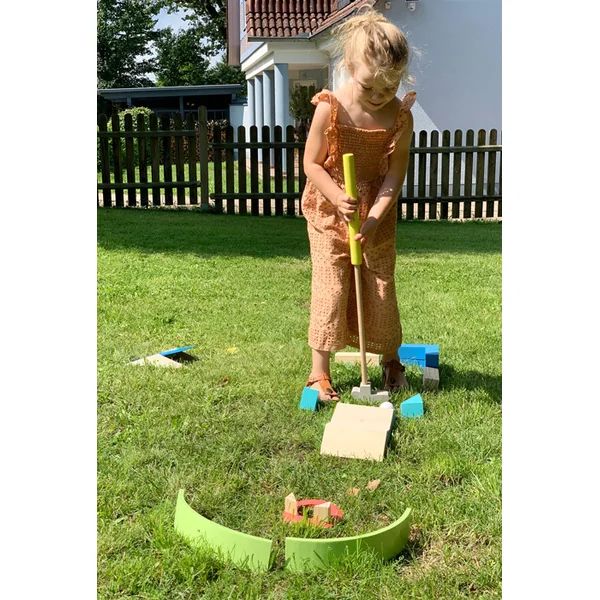 Set de mini-golf fabriqué en bois durable et résistant. Dans l’emballage, vous trouverez des clubs de golf de 3 longueurs différentes, pour les golfeurs et golfeuses de toutes tailles. Les balles sont en toute sécurité douces. Emballé dans un sac pratique pour un rangement et un transport faciles. L’emballage comprend des vagues, une balançoire, un tunnel et d’autres obstacles. La disposition du parcours et le niveau de difficulté peuvent être ajustés pour différentes tranches d’âge. Il entraîne la compétence et la concentration. Un jeu classique au design moderne.