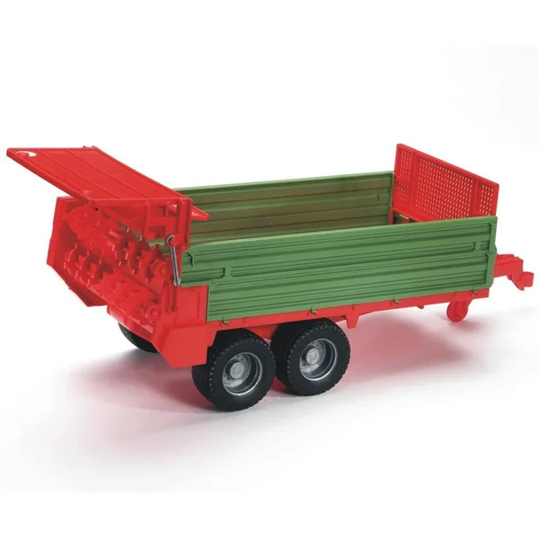 Remorque épandeur à fumier en plastique compatible avec tous les tracteurs Bruder sauf la gamme Roadmax 1er âge. Les rouleaux arrières tournent lorsque l’épandeur roule et la partie arrière peut être levée et abaissée. Echelle 1/16ème. En plastique.