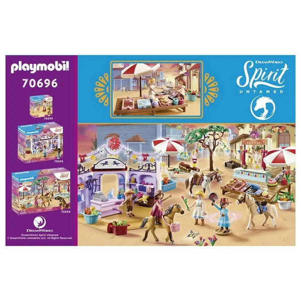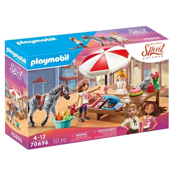 Bienvenue au festival de Miradero ! Il y a des bonbons pour tout le monde à l’étal de friandises de Miradero ! Contient deux personnages, un cheval et des accessoires.Lucky se retrouve obligée de quitter sa ville natale pour s’installer dans le grand Ouest avec sa famille. Elle se lie d’amitié avec un mustang sauvage qu’elle nomme Spirit et fait la rencontre d’Apo et Abigaëlle ainsi que leurs chevaux respectifs. Elles vont alors découvrir le pouvoir de l’amitié et de la liberté dans un monde rempli d’aventures. Un film d’animation avec tous tes personnages préférés de la série Spirit arrive au cinéma pour l’été 2021 !