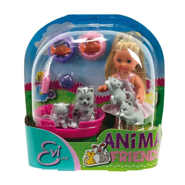 Evi élève 4 animaux et elle a tout le nécessaire pour bien s’en occuper : biberon, gamelle, jouet, couffin. Modèle selon disponibilité. Vendue à l’unité.
