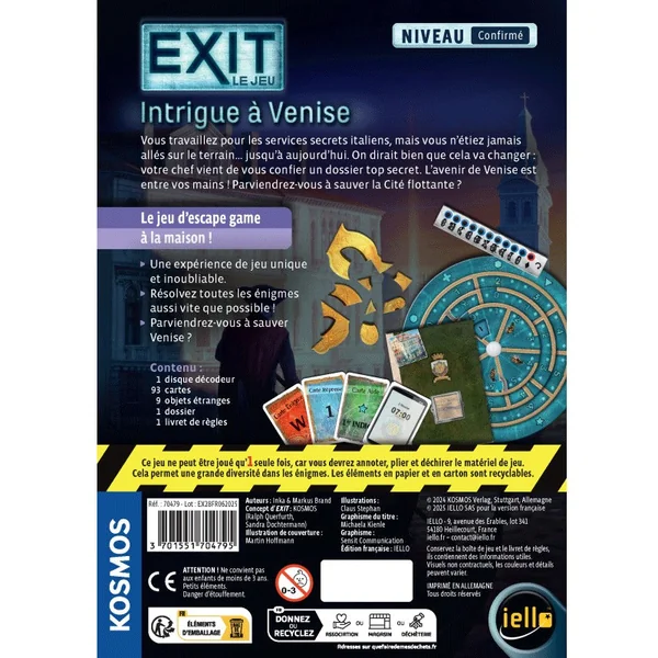 EXIT est un jeu qui reprend les sensations des « escape games ». Muni d’indices, de matériel et d’un décodeur, vous aurez pour mission de sortir du jeu le plus rapidement possible.