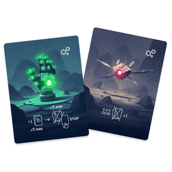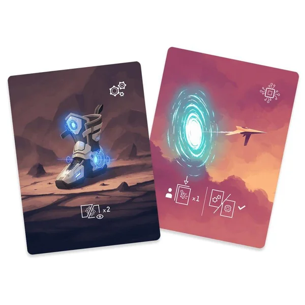 Eternitium est une excellente porte d’entrée dans l’univers riche du deckbuilding. Dans ce jeu de construction de deck, votre objectif est simple en apparence : être le premier à vous débarrasser de vos dix cartes « Époques » placées sur votre plateau. À chaque tour, vous piochez cinq cartes de votre deck pour tenter de combiner au mieux les technologies que vous avez acquises et les portails collectés, afin de traverser les différentes époques. Le premier joueur à franchir toutes les époques atteint la pierre d’immortalité… et remporte la partie.