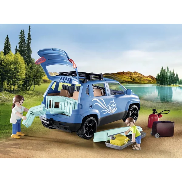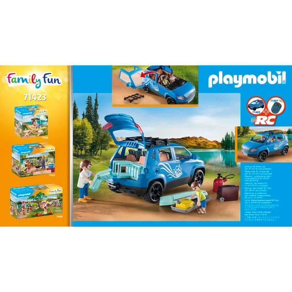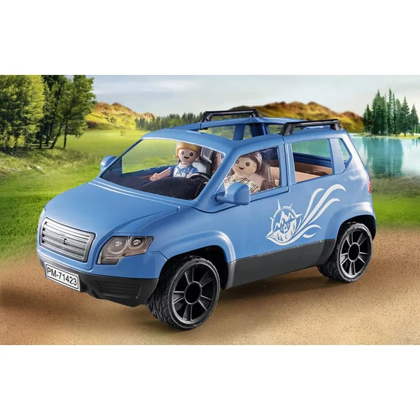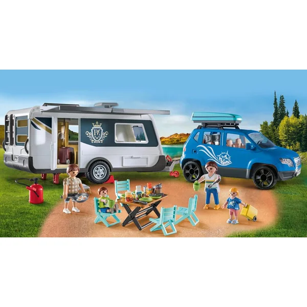 Une grande caravane pour toute la famille, une voiture, une table, un coffre de toit et de nombreux accessoires. Accroche la caravane à la voiture, grimpe dedans et pars à la recherche du meilleur endroit pour camper. Que ce soit pour s’évader le temps d’un week-end ou pour un long voyage, la caravane vous emmènera où vous voulez. Contient 4 personnages, du mobilier et de nombreux accessoires.