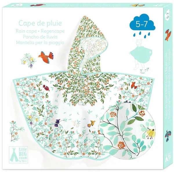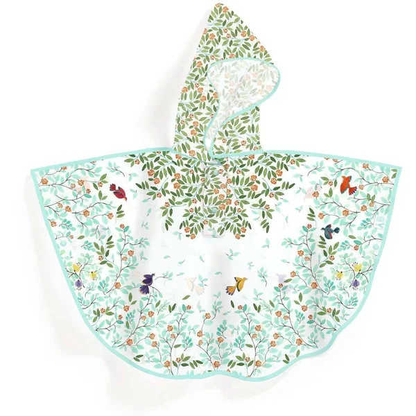 Une cape de pluie avec capuche (5-7 ans), chic et pratique, illustrée de ravissants oiseaux dans un décor printanier. Douce et souple, elle est agréable à porter et accompagne l’enfant dans ses mouvements. Elle s’enfile facilement grâce à ses boutons pression. Un accessoire idéal pour égayer les sorties sous le pluie !