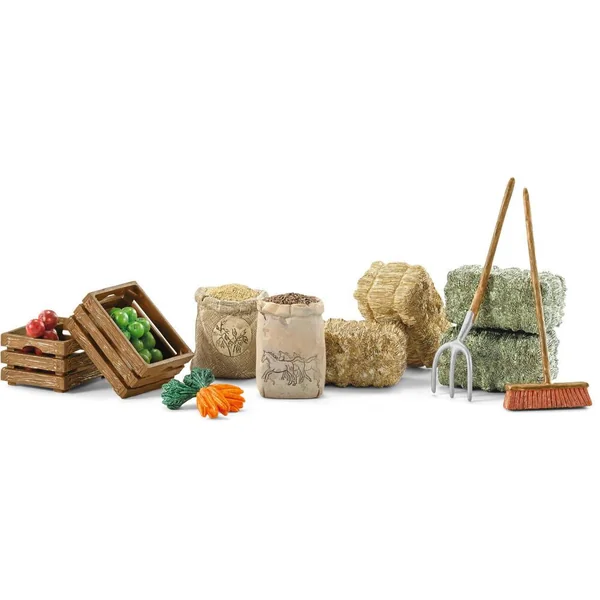 Chaque cheval a sa nourriture préférée. C’est pourquoi, il est bon d’avoir quelque chose de particulier pour chacun des animaux de race. Du foin, de la paille, des carottes et une pomme de temps en temps. Presque chaque cheval aime ca. Bon amusement lors du nourrissage ! Anecdote : Un cheval adulte mange environ 10 kg de foin chaque jour.