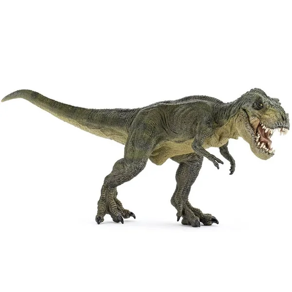 Le Tyrannosaure vécu il y a environ 70 millions d’années et figure parmi les plus grands dinosaures carnivores. Son nom signifie Roi des reptiles tyrans . Avec un corps gigantesque de près de 12 m de long et des dents pouvant mesurer jusqu’à 20 cm, ce bipède pourvu de tous petits bras pouvait dépasser les 6 mètres de haut et peser plus de 6 tonnes. D’un grand réalisme, le modèle reproduit par PAPO permet d’admirer la puissante musculature du T-Rex. L’articulation de la mâchoire met en avant la dentition impressionnante du prédateur !