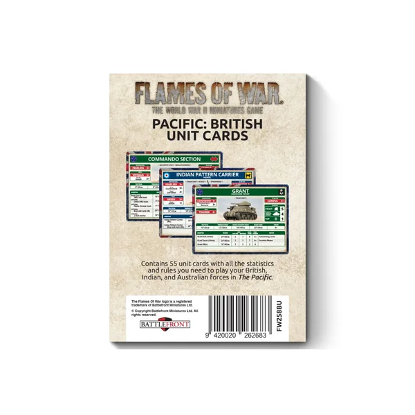 Le paquet de cartes d’unités britanniques, australiennes et indiennes du Pacifique contient 55 cartes d’unités.