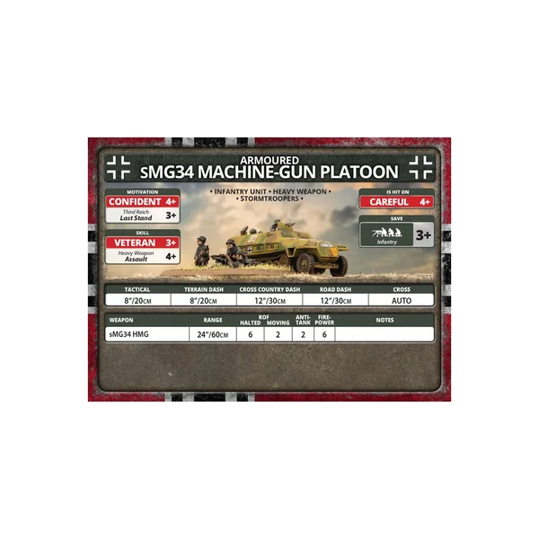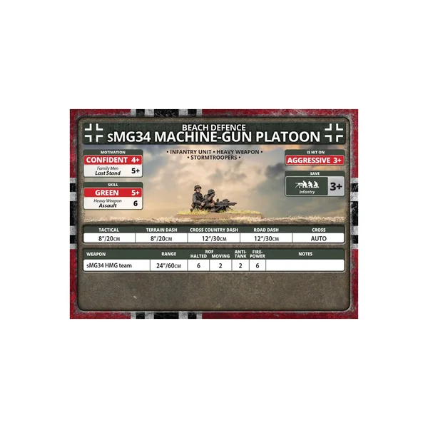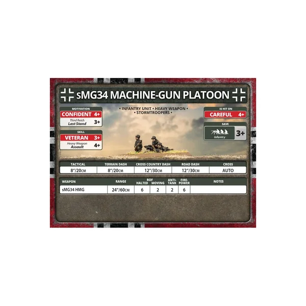 Cette boîte de Machine-Gun Platoon contient quatre équipes de mitrailleuses HMG et trois cartes d’unité.