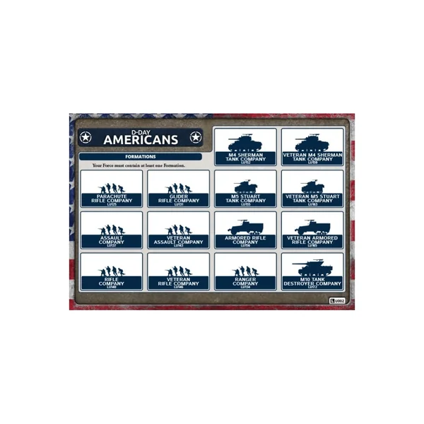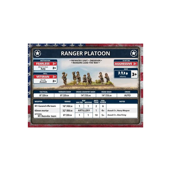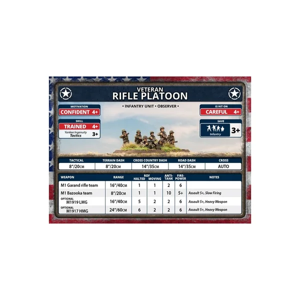 • 34x Infantry Teams (2x Leader, 18x Garand Teams, 4x 60mm Mortar, 2x SMG Teams, 4x Bazooka Teams, 4x LMG Teams)