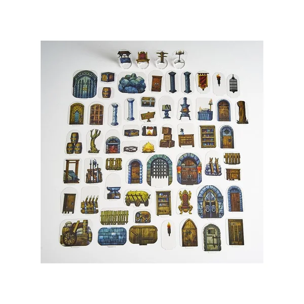 Flat Plastic Miniatures – Objects and Scenery est un pack de 62 pièces comprenant des portes, des meubles, des colonnes, des barricades, des coffres à trésors, et bien d’autres encore.