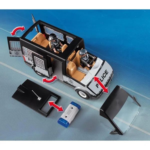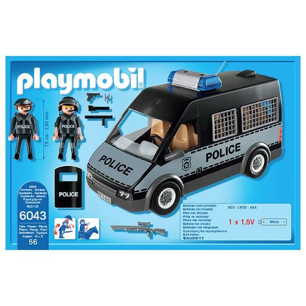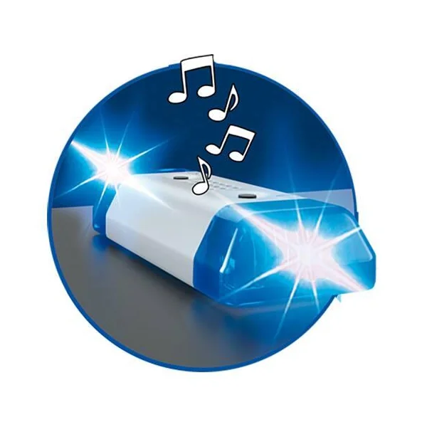 Avec 2 personnages et de nombreux accessoires. Le toit et le pare-brise sont amovibles et les portes arrière et latérales s’ouvrent. Effets lumineux et sonore (nécessite 1 pile 1,5V AAA non fournie)-