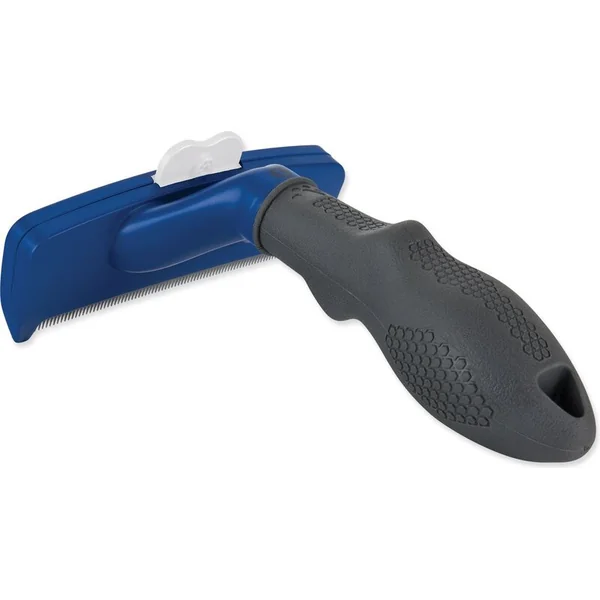 Le couvercle protecteur glisse doucement sur la peau et empêche les bords de la lame de s’enfoncer dans la peau. Le bord incurvé épouse la forme naturelle et la structure du corps de l’animal, rendant le brossage plus agréable. Le bouton FURejector® libère facilement le pelage brossé, rendant le brossage plus simple que jamais. Le bord protecteur protège les dents lorsque le peigne n’est pas utilisé.