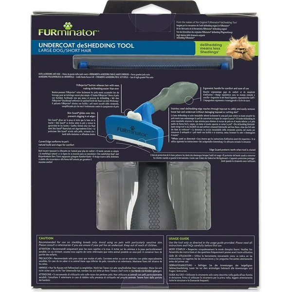 Le peigne FURminator® pour le sous-poil des chiens de grande taille pesant entre 24 et 41 kg avec un pelage court. Il élimine jusqu’à 99 % des poils lâches. Il aide également à réduire la formation de boules de poils.