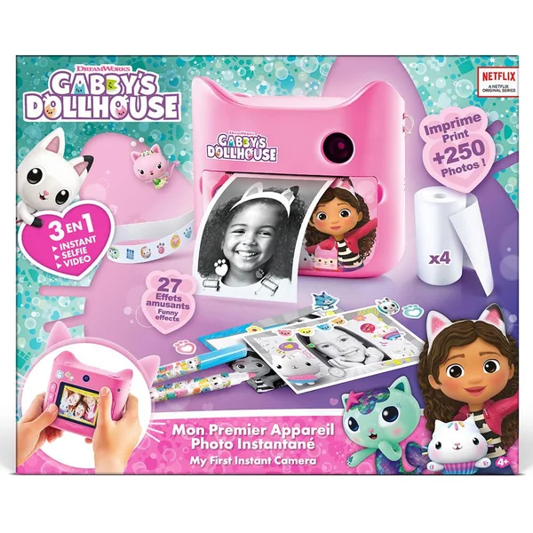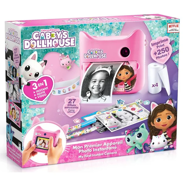 Des heures de fun et de créativité avec Gabby ! Prends des photos ou des vidéos. Imprime tes photos instantanément et personnalise-les avec les filtres Gabby et la Maison Magique et avec les feutres et les stickers ! Imprime plus de 250 photos !