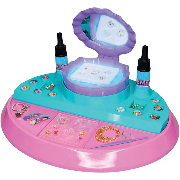 Fabrique jusqu’à 100 bijoux uniques ! Verse le gel fourni dans l’un des 2 moules, ajoute les décorations incluses, laisse reposer tes créations 3 minutes sous la lampe UV et c’est prêt !