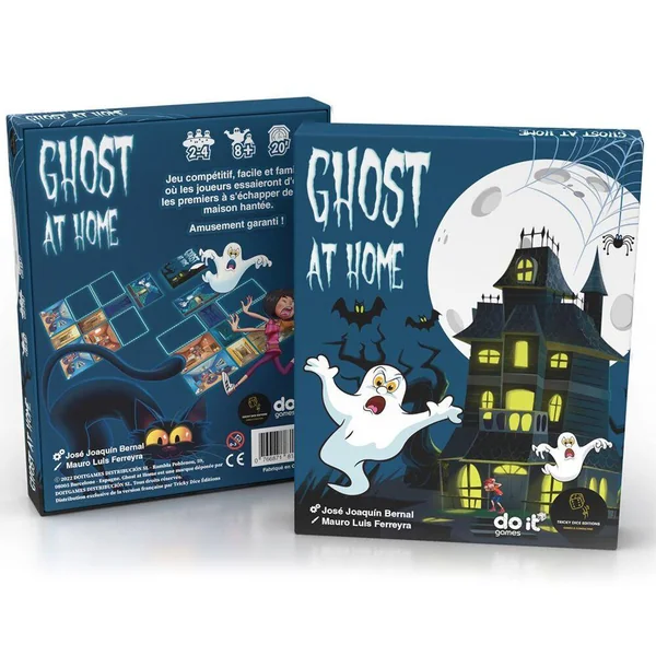 Plongez dans l’aventure amusante de Ghost At Home ! Explorez une maison hantée pleine de surprises dans ce jeu familial. Défiez vos amis et soyez le premier à guider votre personnage jusqu’aux étages supérieurs pour remporter la partie. Accompagné de votre chat Max, faites fuir les fantômes et faites preuve de ruse pour être le premier à vous échapper de la maison hantée dans ce jeu captivant conçu pour les joueurs à partir de 7 ans. Êtes-vous prêt à relever le défi et à échapper aux malicieux fantômes ?