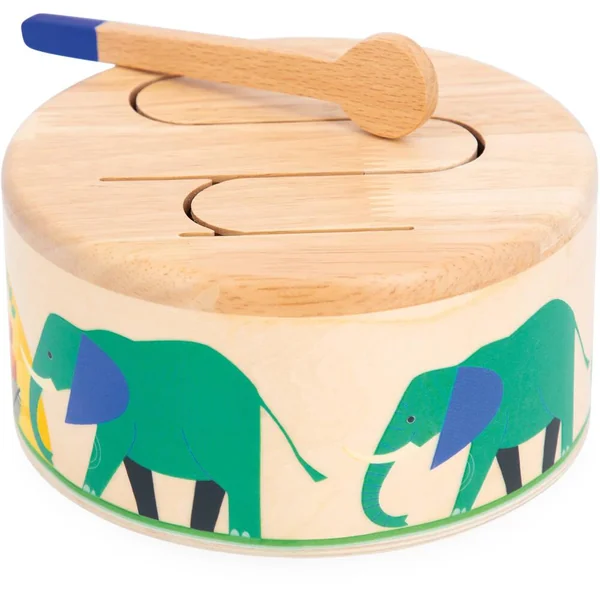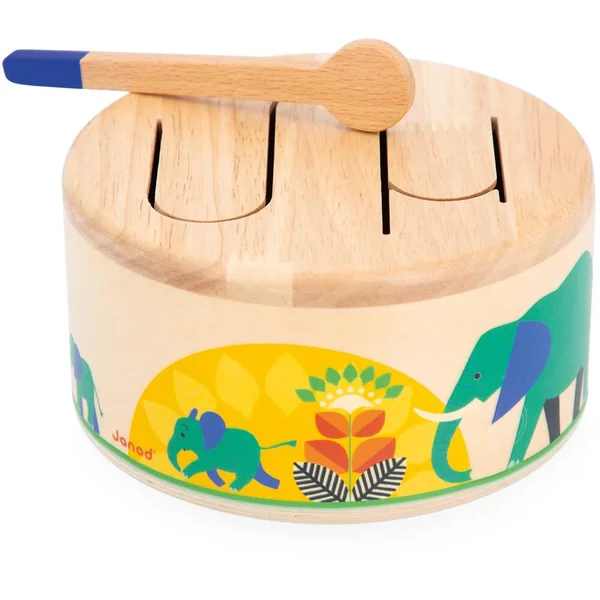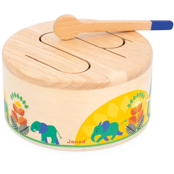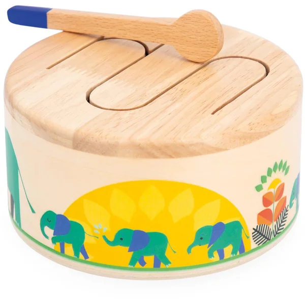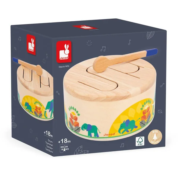 Boum boum tam ! Ce tambour en bois permettra à votre enfant de développer son sens du rythme et sa coordination main-oeil grâce à sa baguette en bois incluse. Tout en rondeur et facile à transporter ce jouet d’imitation résonne lorsque l’enfant tape dessus. Son motif en forme de vague permet la résonance de différentes sonorités, idéales pour sensibiliser les enfants aux rythmes et sons. Jouet d’éveil musical pour les enfants à partir de 18 mois. Jouet en bois FSCTM