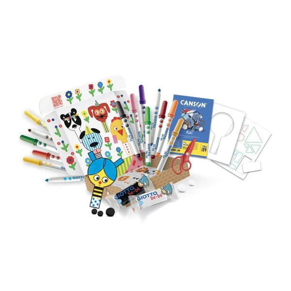 - ENSEMBLE COMPLET : Le Giotto be-be’ My Little Friends contient une variété de fournitures artistiques, notamment des crayons de couleur et des marqueurs, pour permettre aux enfants d’expérimenter différentes couleurs et techniques de dessin.