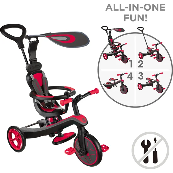 Le tricycle 4 en 1 dispose d’un mécanisme de transformation unique des roues, vous permettant de passer facilement du tricycle à la roue d’équilibre, sans outils.