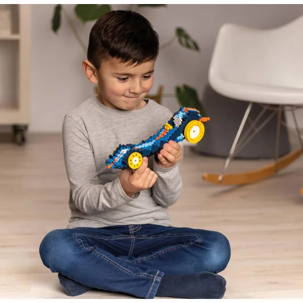 Cette box vous permet de créer pas à pas un magnifique dragster. L’ensemble comprend 275 pièces, 2 grandes roues Go, 2 roues Go réversibles, 2 plaques pour les châssis et un guide illustré avec les instructions pour construire étape par étape le véhicule.