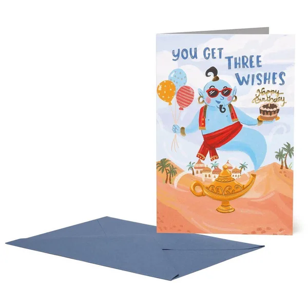 GRANDE CARTE DE VŒUX – TROIS SOUHAITS GENIE