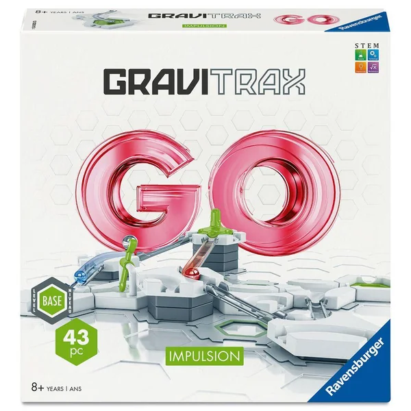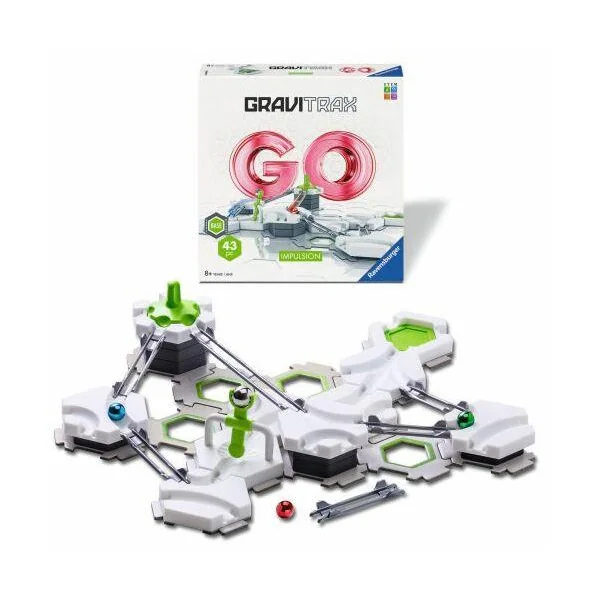 GraviTrax GO Impulsion contient tout ce dont vous avez besoin pour vous familiariser avec GraviTrax ! Les virages, les rails, les blocs de construction et plus encore sont les pièces de base, nécessaires pour créer vos circuits avec l’élément phare inclus : le marteau. Idéal pour donner de l’élan à vos billes sur le parcours. Peut se combiner avec tous les produits de la gamme GraviTrax. Dès 8 ans.
