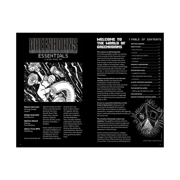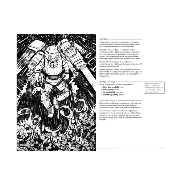 La version Essentials inclut toutes les règles, une mission tirée du livre Greenhorns en dur, et quatre classes de joueurs, ce qui en fait une version idéale pour se lancer dans le jeu, la partager avec d’autres joueurs ou comme support de table portable.